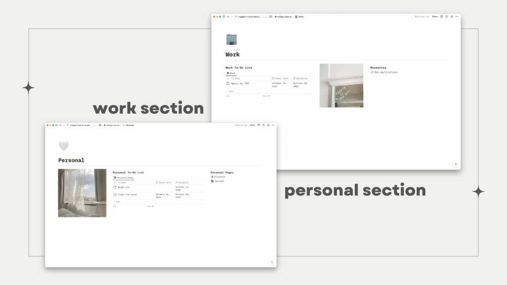 - A Personal Section with a Finance Tracker and a Journal Page.