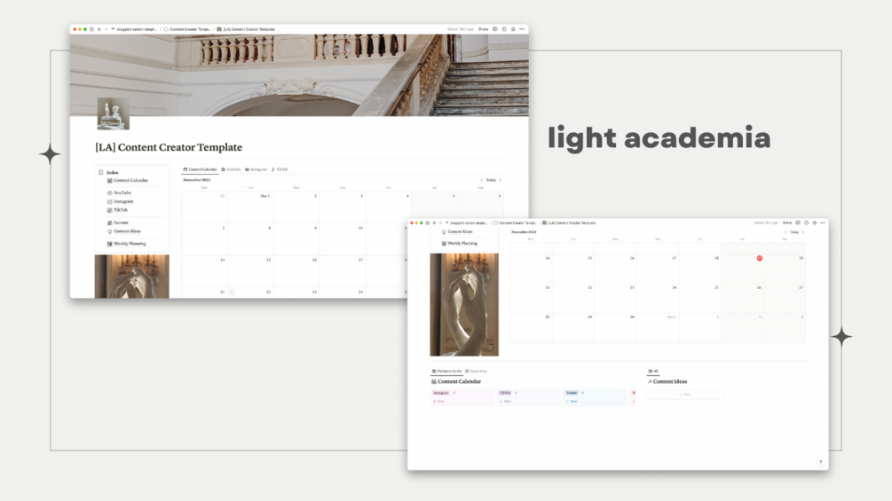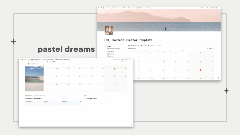- A page for Content Ideas, so you never feel lost or do not know where to go.