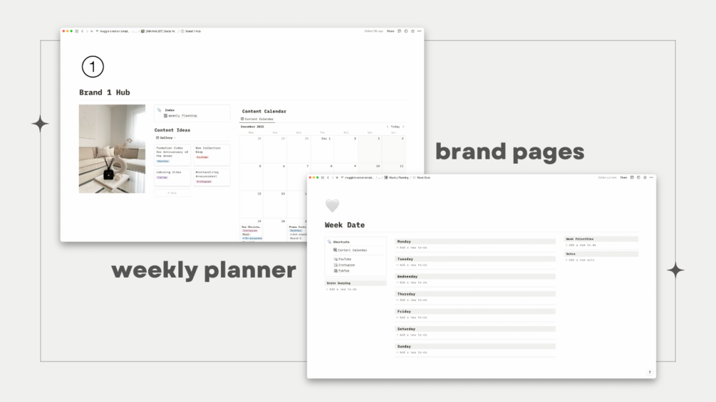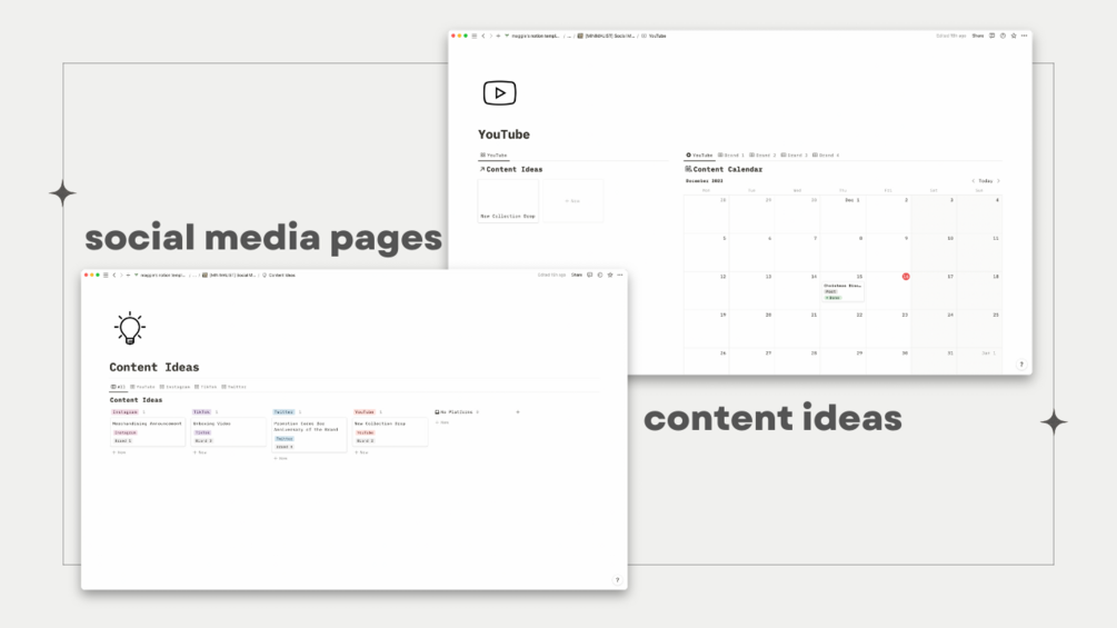 - The Content Ideas Page is your creative space. The place for you to brainstorm all your ideas and concepts, which will then turn into posts and profit.